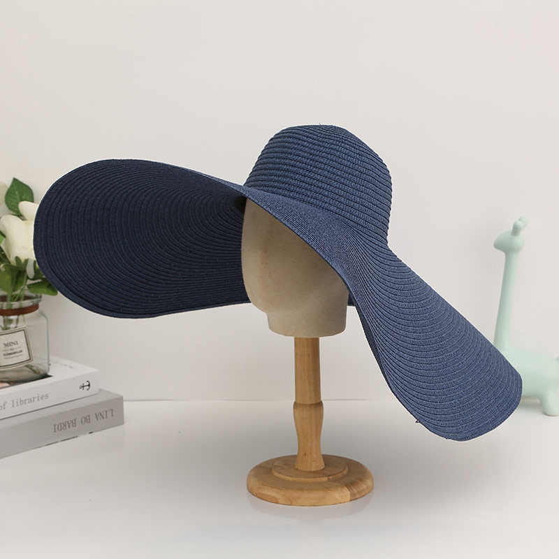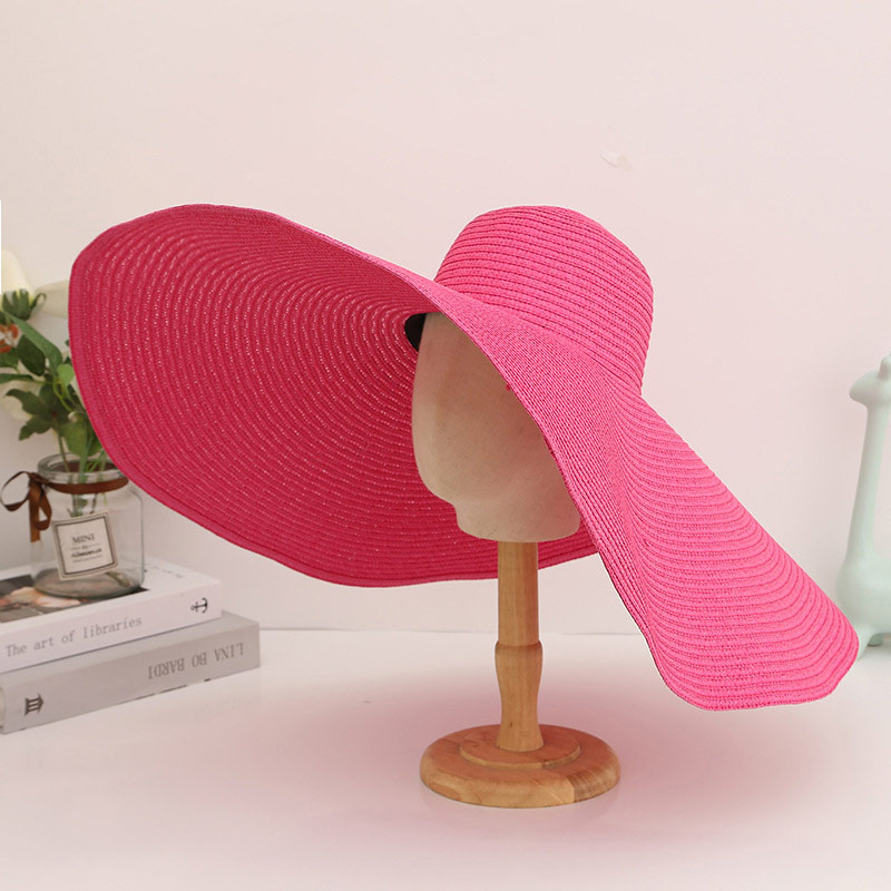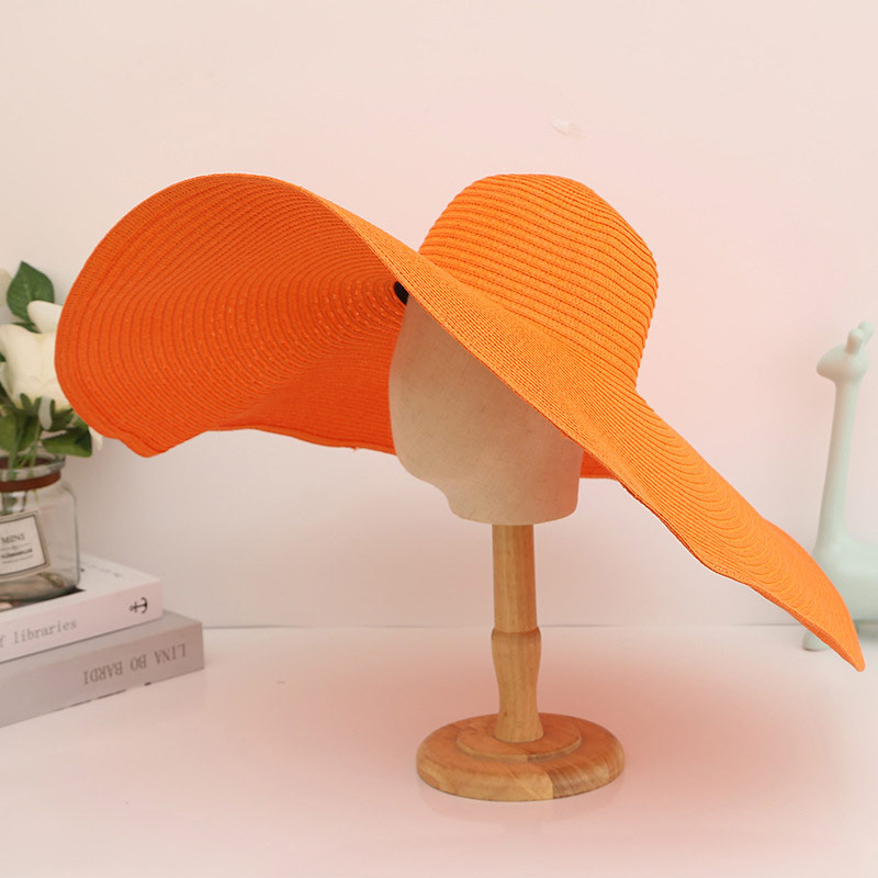 कस्टम समुद्र तट स्ट्रॉ चोटी बड़े आकार का फ्लॉपी हैट |