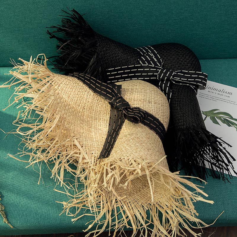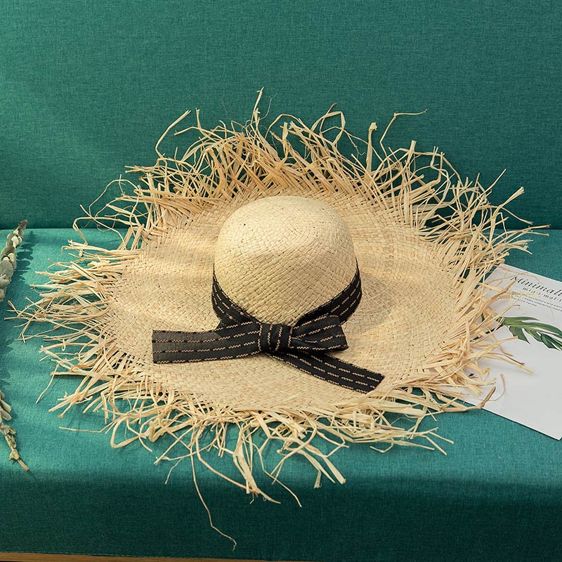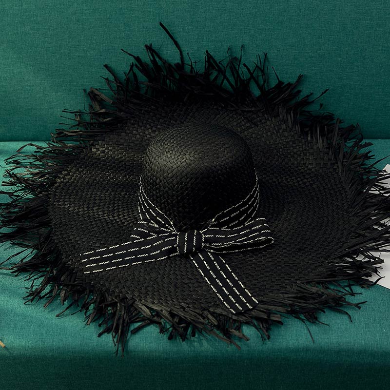 कस्टम रंगे काले रैफिया स्ट्रॉ लेडी फ्लॉपी हैट |
